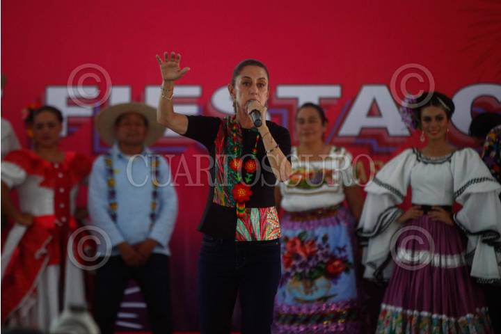 Claudia Sheinbaum, jefa de Gobierno, durante la jornada de trabajo en las alcaldías Venustiano Carranza e Iztacalco.
