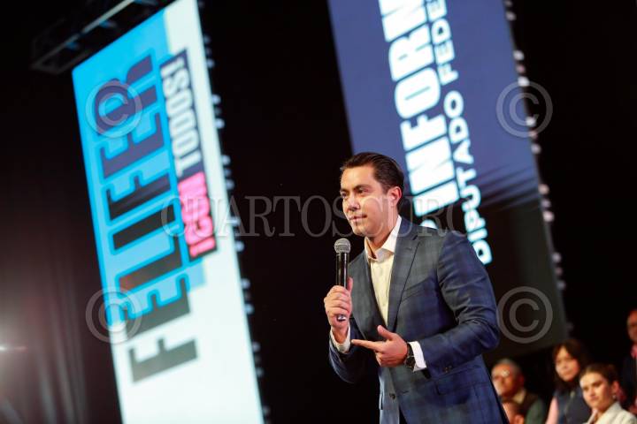 QUERÉTARO, QUERÉTARO, 13ENERO2024.- El diputado federal Feliper Fernando (Felifer) Macías rindió su 5o Informe Legislativo en el Auditorio Josefa Ortiz de Domínguez de la capital queretana. El acto contó con la presencia del gobernador Mauricio Kuri y el dirigente nacional del Partido Acción Nacional, Marko Cortés. FOTO: CÉSAR GÓMEZ/CUARTOSCURO.COM