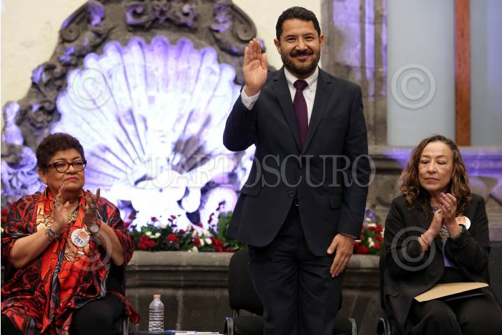 CIUDAD DE MÉXICO. 27MARZO2024.- El jefe del Gobierno de la Ciudad, Martí Batres Guadarrama, el fiscal encargado Ulises Lara y la titular de Inmujeres, Ingrid Gómez: encabezaron el informe Mensual de resultados de la Alerta por Violencia en contra de las Mujeres. El evento tuvo lugar en el Foro cultural Cosmos. FOTO: VICTORIA VALTIERRA/CUARTOSCURO.COM