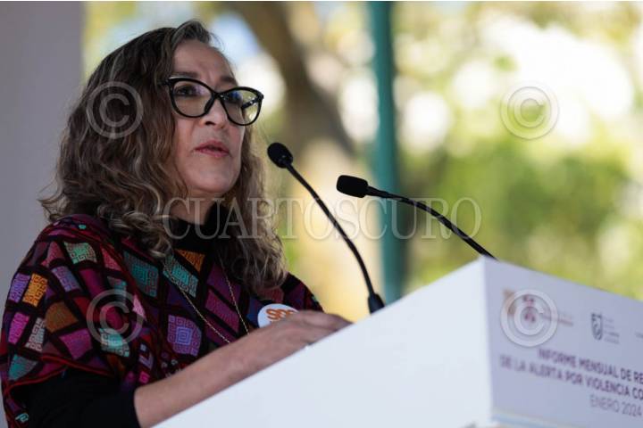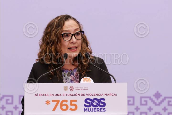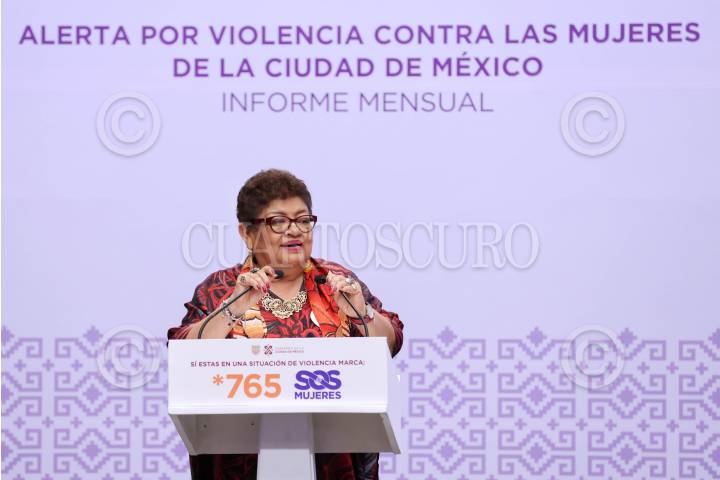 Ingrid Gómez Saracíbar, Secretaria de las Mujeres de la Ciudad de México, durante el informe mensual por la violencia contra las mujeres de la Ciudad de México.
