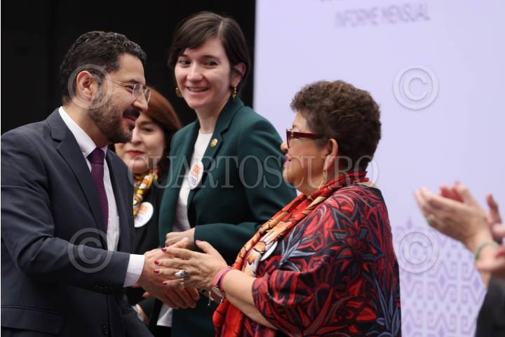 CIUDAD DE MÉXICO, 25ENERO2024.- El jefe del Gobierno, Martí Batres Guadarrama, encabezó la presentación del Informe Mnesual de Avances de la Alerta por Violencia contra las Mujeres de la Capital. Asistieron Ingrid Gómez, Ofelia Ángulo y el encargado de la Fiscalía de la Ciudad, Ulises Lara, entre otro funcionarios locales. FOTO: GOBIERNO DE LA CIUDAD/CUARTOSCURO.COM