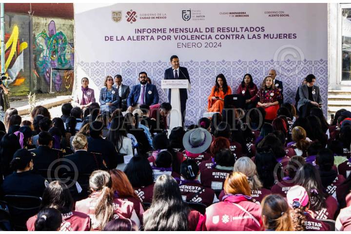 CIUDAD DE MÉXICO, 25ENERO2024.- El jefe del Gobierno, Martí Batres Guadarrama, encabezó la presentación del Informe Mensual de Avances de la Alerta por Violencia contra las Mujeres de la Capital. Asistieron Ingrid Gómez, Ofelia Ángulo y el encargado de la Fiscalía de la Ciudad, Ulises Lara, entre otro funcionarios locales. FOTO: GOBIERNO DE LA CIUDAD/CUARTOSCURO.COM