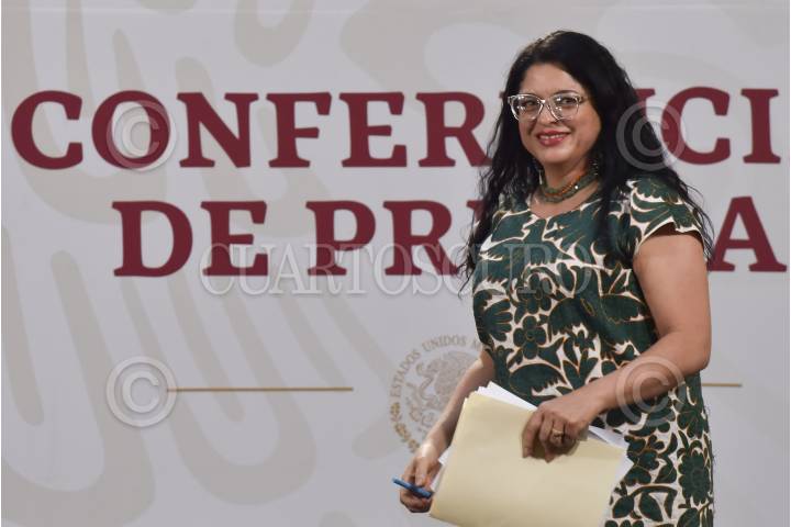 CIUDAD DE MÉXICO, 11SEPTIEMBRE2024.- Guadalupe Taddei, consejera presidenta del INE,se retira del evento luego de ofrecer unas palabras. FOTO: DANIEL AUGUSTO/ CUARTOSCURO.COM