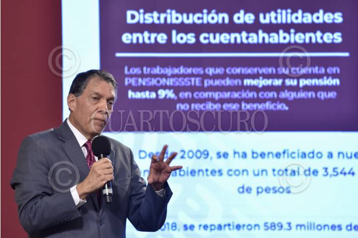 Iván H. Pliego Moreno, vocal ejecutivo de PensionISSSTE, durante la conferencia de microcréditos que el gobierno federal ha puesto en disposición durante la emergencia sanitaria por coronavirus (covid-19).