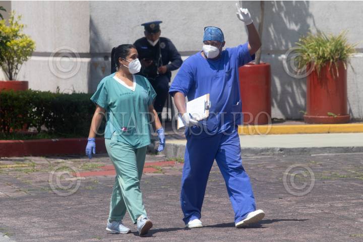 Doctores caminan por las inmediaciones del Hospital General Tláhuac