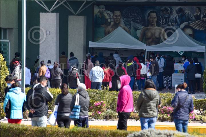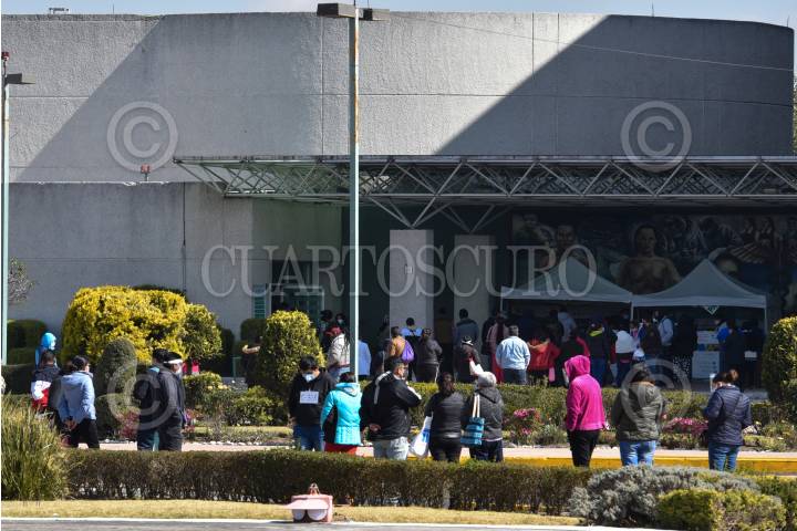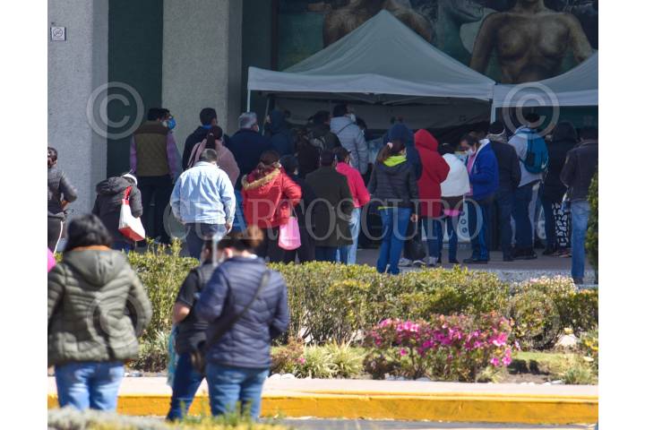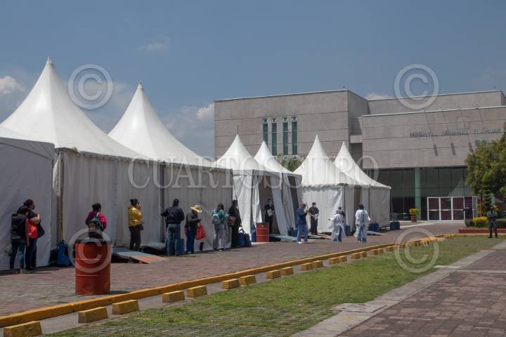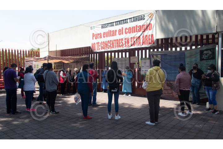 Familiares realizaron una fila para ingresar con los doctores que les brindan información sobre el avance de sus familiares en las carpas habilitadas del Hospital General Tláhuac