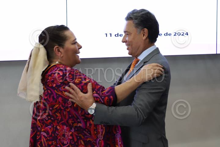 CIUDAD DE MÉXICO, 11SEPTIEMBRE2024.- Guadalupe Taddei, consejera presidenta del INE, saluda a José Thompson, secretario ejecutivo de la Unión Interamericana de Organismo Electorales (UNIORE). FOTO: DANIEL AUGUSTO/ CUARTOSCURO.COM