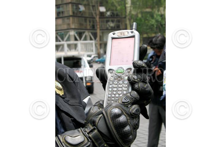 MÉXICO, D.F. 31JULIO2007.- Elementos de tránsito de la SSP local ya cuentan con equipos portátiles para controlar los vehículos que han sido infraccionandos, además contarán con la foto del infractor. FOTO: PEDRO MARRUFO/CUARTOSCURO.COM