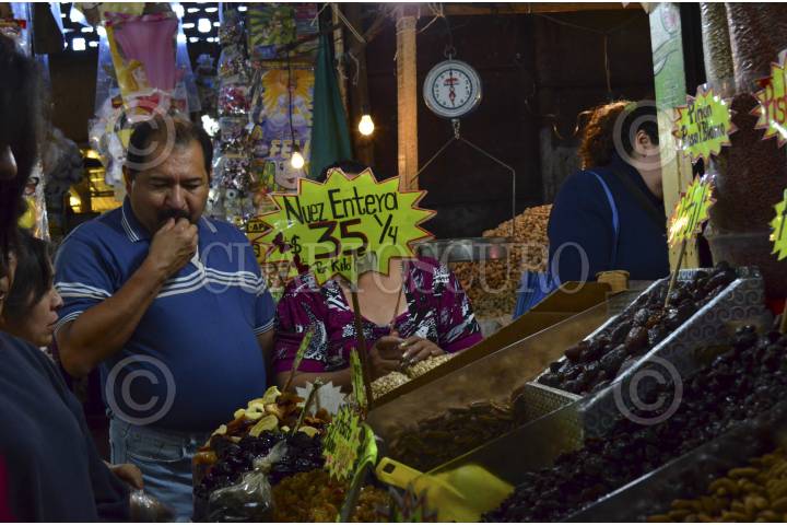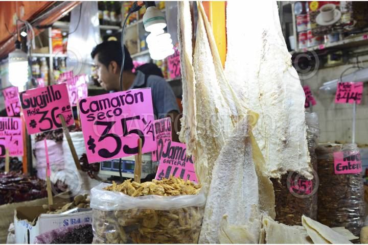 MÉXICO, DF., 21DICIEMBRE2013.- A pesar del alza en el precio de los principales ingredientes para la cena de Navidad, como el camarón y el bacalao, cientos de personas se surten en el mercado de la Merced para comprar todo lo necesario para festejar estas fechas decembrinas. Romeritos, nueces y almendras, chile y frutas secas, moles y dulces son los principales productos que se adquieren. FOTO: MARÍA JOSÉ MARTÍNEZ / CUARTOSCURO.COM