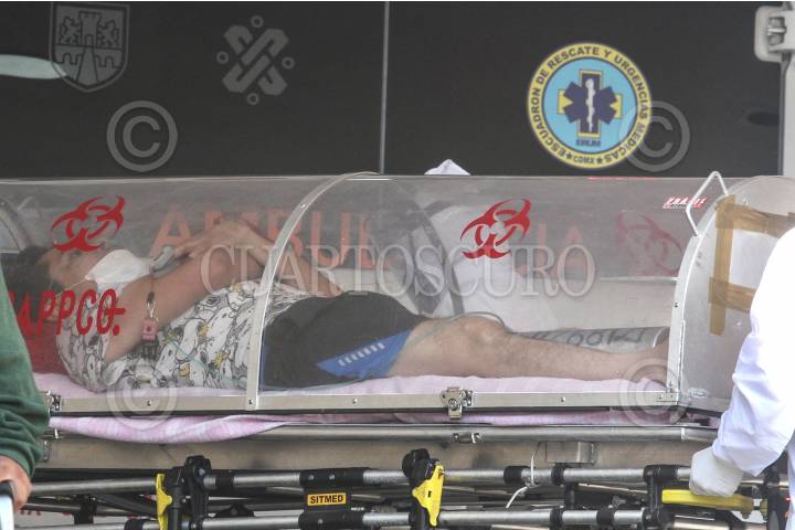 Un hombre es ingresado en cápsula al área de urgencias del Hospital de los Venados. FOTO: ROGELIO MORALES /CUARTOSCURO.COM