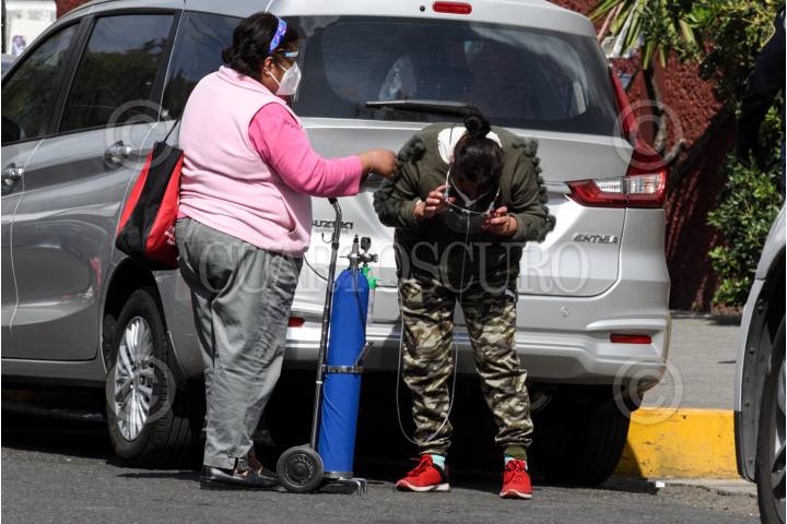 Una mujer acomoda los tubos que transportan oxígeno médico.
