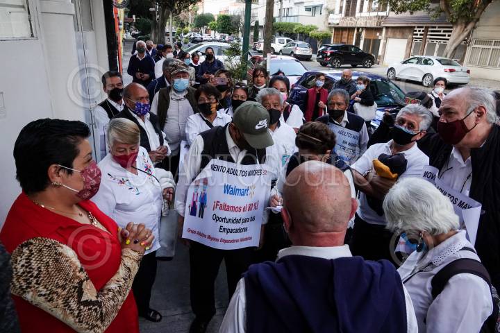 Adultos mayores fueron recibidos por: Jorge Alberto Valencia, encargado de despacho de la Dirección General, y Rosa Ruiz Lopez, directora de políticas públicas del INAPAM, para continuar su proceso ante Walmart y recuperar sus fuentes de empleo.