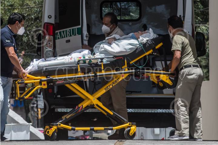 Un paramédico desciende de una ambulancia para ingresar un paciente con complicaciones por covid-19 en el Hospital Rodolfo Antonio de Mucha.