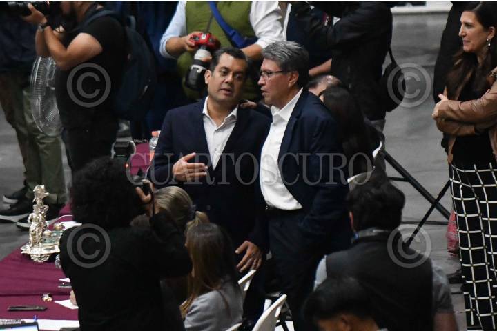 CIUDAD DE MÉXICO, 04SEPTIEMBRE2024.- Con 359 votos a favor y 135 en contra fue aprobada en lo general dictamen de la Comisión de Puntos Constitucionales, con proyecto de Decreto por el que se reforman, adicionan y derogan diversas disposiciones de la Constitución Política de los Estados Unidos Mexicanos, en materia de reforma del Poder Judicial. En la imagen, Ricardo Monreal, diputado y coordinador de Morena dialoga con Sergio Gutiérrez, presidente de la mesa directiva. FOTO: MARIO JASSO/CUARTOSCURO.COM