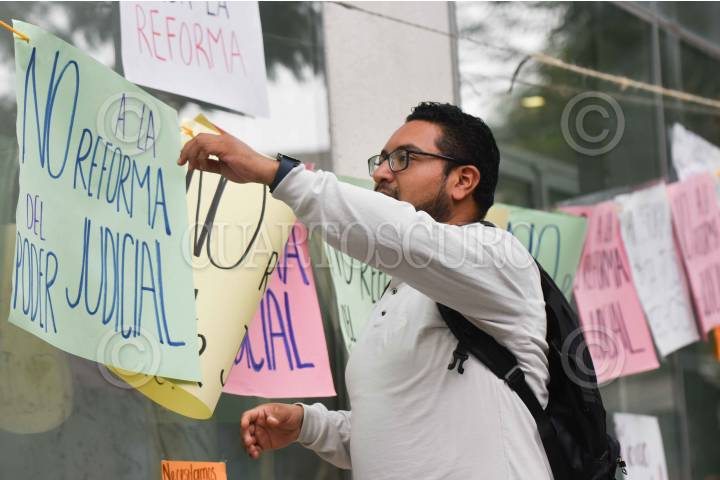 CIUDAD DE MÉXICO, 05SEPTIEMBRE2024.- Trabajadores del Poder Judicial de la capital continúan con su manifestación en los alrededores de la "Ciudad Judicial", ubicada en la colonia Doctores, como parte de las actividades que se desarrollan en la capital en contra de la reforma judicial que recientemente fue aprobada por la Cámara de Diputados y se prevé sea discutida en el Senado de la República a partir del próximo domingo. FOTO: MARIO JASSO/CUARTOSCURO.COM