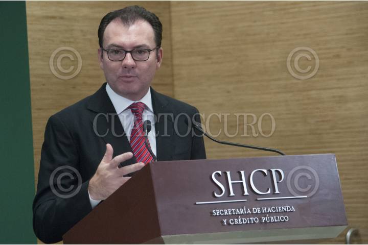 MÉXICO, D.F., 02OCTUBRE2014.- Luis Videgaray, secretario de Hacienda, durante la conferencia de prensa para anunciar la Iniciativa de Ley para impulsar el incremento sostenido de la Productividad y la competitividad de la economía nacional que propuso el presidente Enrique Peña Nieto. FOTO: DIEGO SIMÓN SÁNCHEZ /CUARTOSCURO.COM