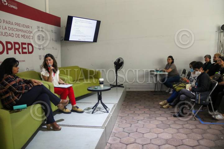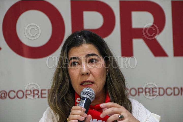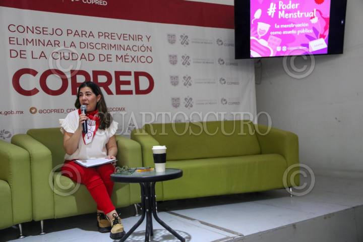 Gerladina González presidenta de la Copred, en un foro de análisis de la menstruación, en las oficinas de esta dependencia.