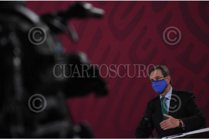 Esteban Moctezuma Barragán, secretario de Educación, durante la conferencia de prensa sobre el regreso a clases.
