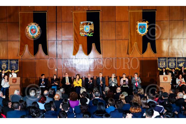 CIUDAD DE MÉXICO. 23AGOSTO2023.- La Comunidad de la Universidad Nacional Autónoma de México, dio inicio a su ciclo escolar 2023-2025 con una magna ceremonia, la cual presidió el Dr. Enrique Graue Wiechers, Rector de esta máxima casa de estudios, en la que participaron directores de las diferentes preparatorias, facultades, centros de Investigación, e integrantes de la Junta de Gobierno de esta institución , la cual se llevó a cabo en el salón Juárez del Centro Cultural Tlatelolco. FOTO: ADRIANA ÁLVAREZ/CUARTOSCURO.COM