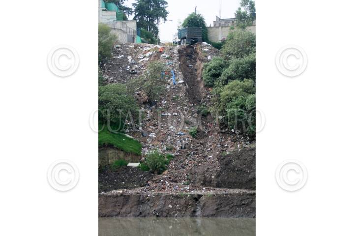 MÉXICO, D.F., 24JUNIO2010.- Un camión se observa en la presa Tacubaya, donde al parecer desde ese punto, se tiran cantidades de basura ya que el cerro muestra un canalillo lleno de basura que va a dar a las aguas negras por lo que trabajadores comienzan los trabajos de remoción de basura para evitar que las próximas temporadas de lluvia hay problemas de inundación. FOTO: ENRIQUE ORDÓÑEZ/CUARTOSCURO.COM