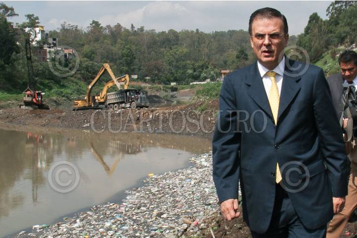 MÉXICO, D.F., 24JUNIO2010 .- Marcelo Ebrard Casaubon, Jefe de gobierno Capitalino, asistió a la presa Tacubaya, donde se empezaran a realizar trabajos de remoción de escombros de basura para que en la temporada de lluvias se reduzca el riesgo de inundaciones. FOTO: ENRIQUE ORDÓÑEZ/CUARTOSCURO.COM