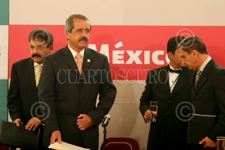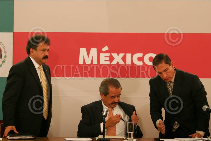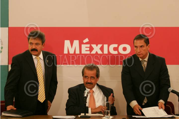 MÉXICO, D.F., 24ABRIL2009.- El secretario de Salud del Distrito Federal, Armando Ahued Ortega, el Secretario de Salud federal, José Angel Cordova Villalobos y el secretario de Salud del Estado de Mexico, Roberto Martinez, durante conferencia de prensa donde se dio a conocer un informe sobre la epidemia de influenza. FOTO: RICARDO CASTELAN/CUARTOSCURO.COM