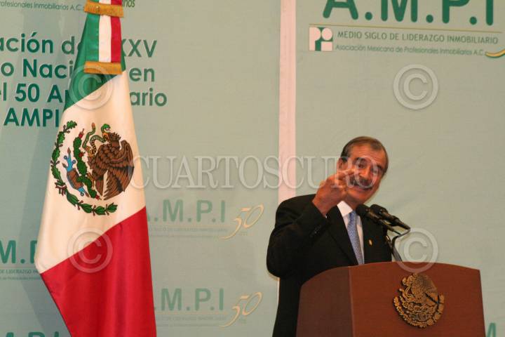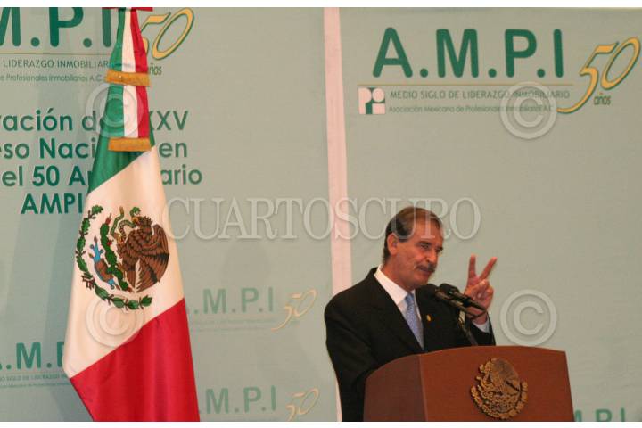 MÉXICO, D.F. 05OCTUBRE2006.- Hoy se llevó a cabo el XXV Congreso Nacional La Asociación Mexicana de Profesionales Inmobiliarios 2006 en su 50 aniversario, Vicente Fox Quesada, presidente de la República Mexicana estuvo presente. Afirmó que el pròximo sexenio, encabezado por Felipe Calderón continuará siendo satisfactorio para la industria inmoviliaria. FOTO: PAOLA HIDALGO/CUARTOSCURO.COM