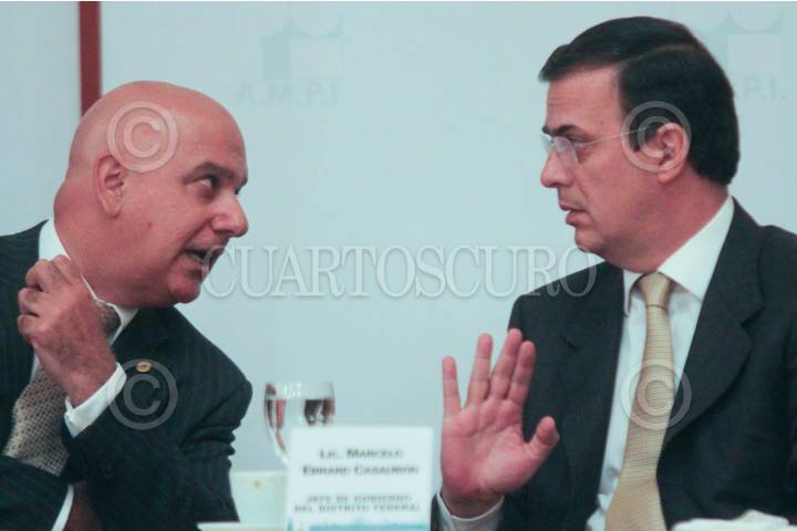 MÉXICO, D.F., 31MAYO2011.-Alejandro Kuri Phere, Presidente de la AMPI CD. de México junto a Marcelo Ebrard, Jefe de Gobierno Capitalino durante erl desayuno que tuvieron por la Asociacion Mexicana de Profesionales Inmobiliarios, Ciudad de México, A.C. FOTO: ENRIQUE ORDÓÑEZ/CUARTOSCURO.COM