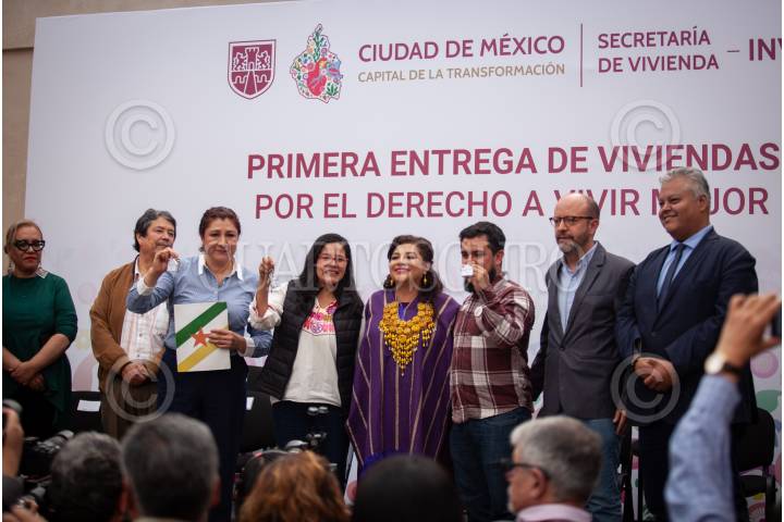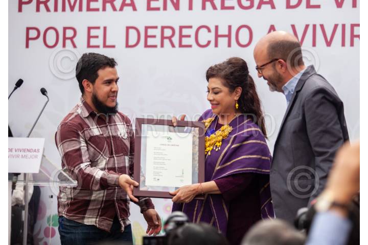 CIUDAD DE MÉXICO, 04DICIEMBRE2024.- Clara Brugada, Jefa de Gobierno, encabeza entrega de vivienda INVI con un total de 90 departamentos. La entrega de llevo a cabo en el emblemático inmueble de Manzanares 25, Centro Histórico. FOTO: ANDREA MURCIA /CUARTOSCURO.COM