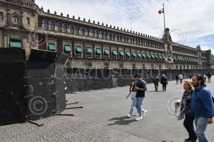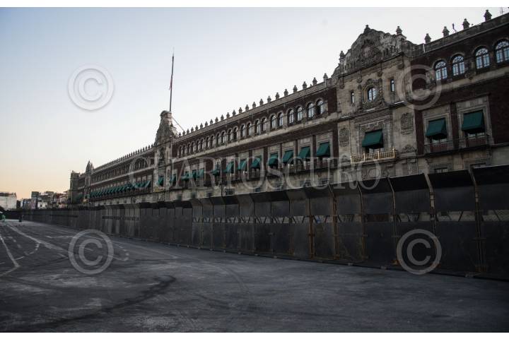 Con vallas metálicas ha sido resguardado Palacio Nacional como medida de prevención de daños al inmueble durante la próximas manifestaciones feministas del 8 de marzo.