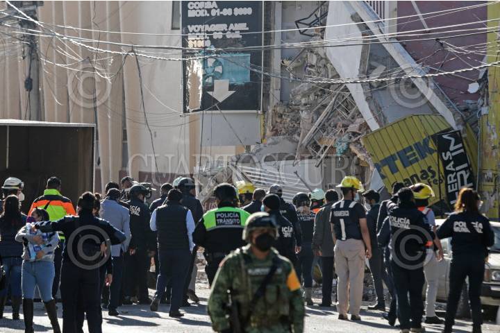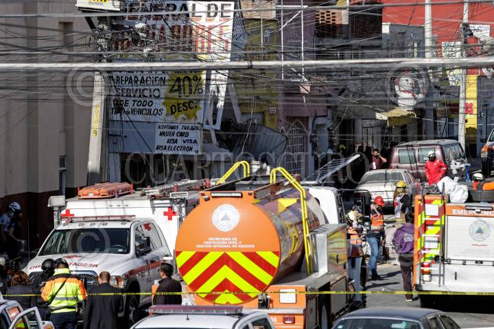 Continúan labores de búsqueda tras el derrumbe de un inmueble por la explosión de un tanque de gas en la 2 Poniente y Diagonal Defensores de la República; según datos oficiales hasta el momento hay 12 personas lesionadas, un muerto y tres posiblemente aún entre los escombros.