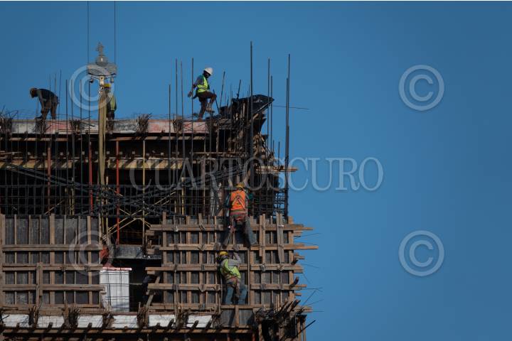 Trabajadores laboran en las alturas de un nuevo inmueble de la colonia Condesa.