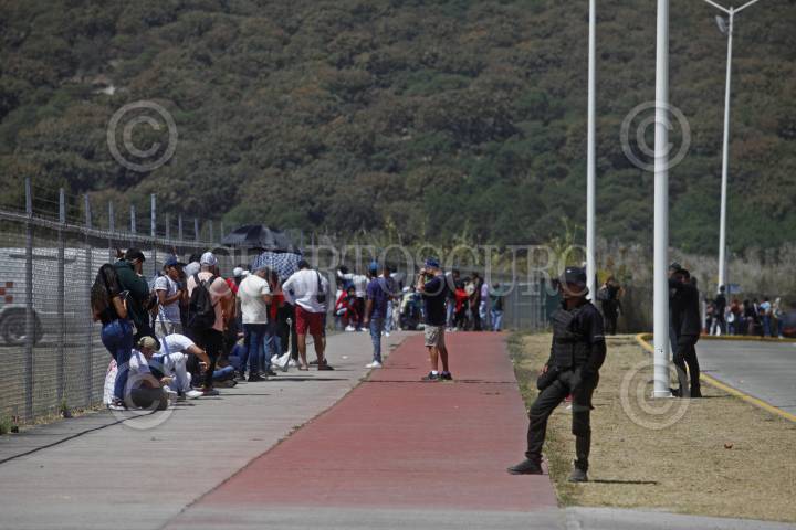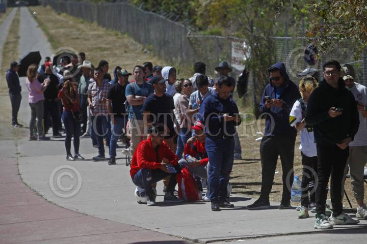Personas hacen fila para adquirir sus boletos para la pelea que sostendrán Saúl “Canelo” Álvarez frente al ingles John Ryder, el próximo 6 de mayo en el Estadio Akron.
