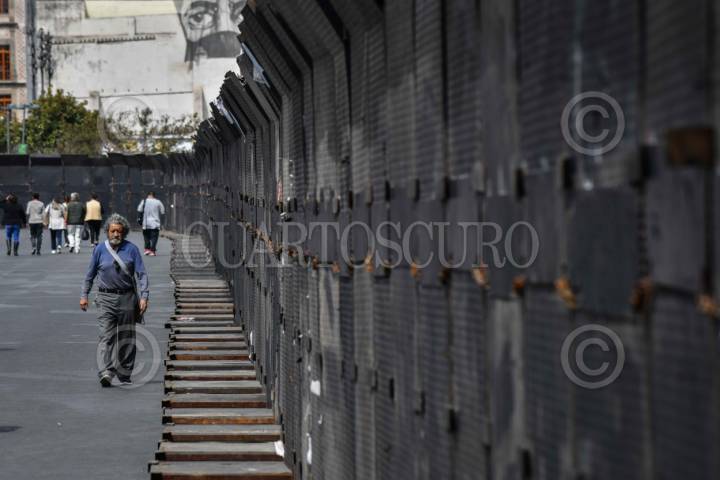 CIUDAD DE MÉXICO, 16FEBRERO2024.- Con vallas metálicas ha sido resguardado Palacio Nacional previo a la marcha “Por nuestra democracia” convocada el próximo domingo 18 de febrero. FOTO: MARIO JASSO/CUARTOSCURO.COM