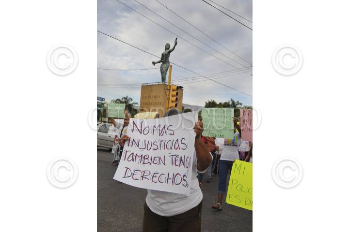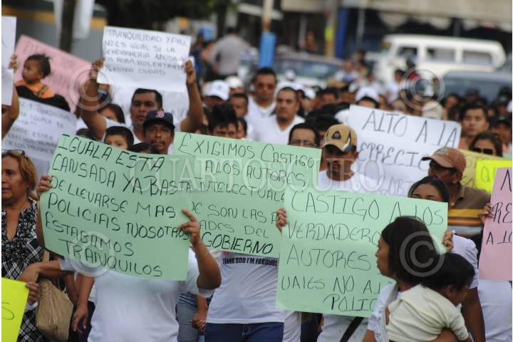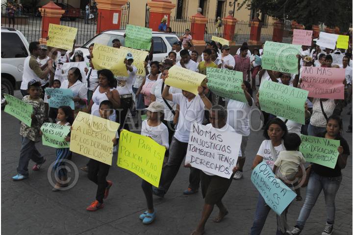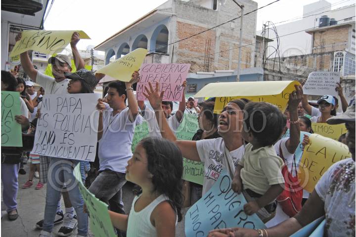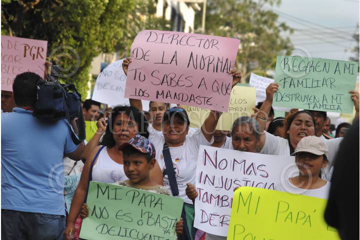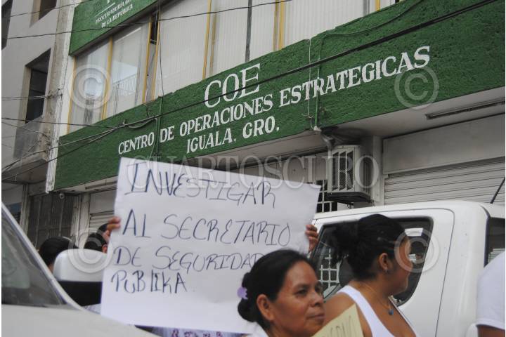 IGUALA DE LA INDEPENDENCIA, GUERRERO, 24ENERO2015.- Familiares de la policías detenidos por el caso Ayotzinapa y ciudadanos marcharon para exigir a la PGR con pancartas ¡Fuera Ayotzinapa! ¡Queremos paz! ¡Mi papá, es policía y no es un delincuente! ¡Quiero a mi papi, es inocente!, los inconforme protestaron frente a las instalaciones Centro de Operaciones Estratégicas de Iguala de la PGR, ellos denunciaron que solo están deteniendo a gente inocente. y exigieron su salida de esta comunidad FOTO: JOSÉ I. HERNÁNDEZ / CUARTOSCURO.COM
