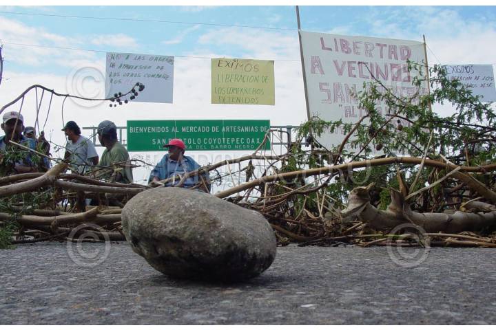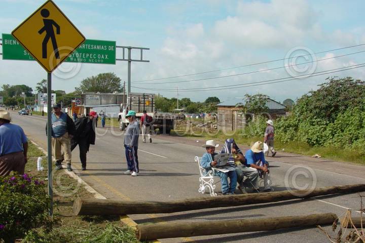 SAN BARTOLO COYOTEPEC, OAXACA 25SEPTIEMBRE2005.- Pobladores inconformes por un rastro insalubre mantienen cerrado los acceso a la comunidad, afectando a las vias de comunicacion ya que se hubica sobre carretera federal rumbo a Puerto Angel y Huatulco. Exigen la liberación de 4 poersonas detenidas. FOTO: Blanca Esthela Hernández/CUARTOSCURO.COM