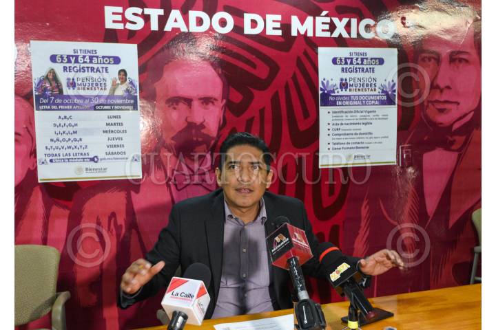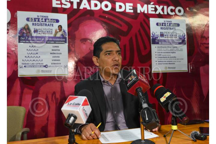 TOLUCA, ESTADO DE MÉXICO, 07OCTUBRE2024.- Ernesto Armendáriz Ramírez, Delegado de Bienestar en el Estado de México informó en conferencia de prensa que a partir del lunes 7 de octubre hasta el 30 de noviembre se realizará el registro al Programa Pensión Mujeres Bienestar de 60 a 64 años de edad, iniciando con mujeres de 63 y 64 años de edad y en el caso de municipios indígenas o afroamericanos de 60 a 64 años, en la entidad mexiquense se contarán con 136 módulos de atención. FOTO: CRISANTA ESPINOSA AGUILAR /CUARTOSCURO. COM