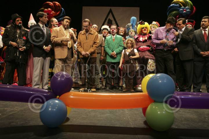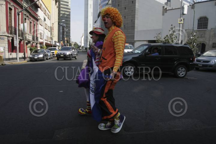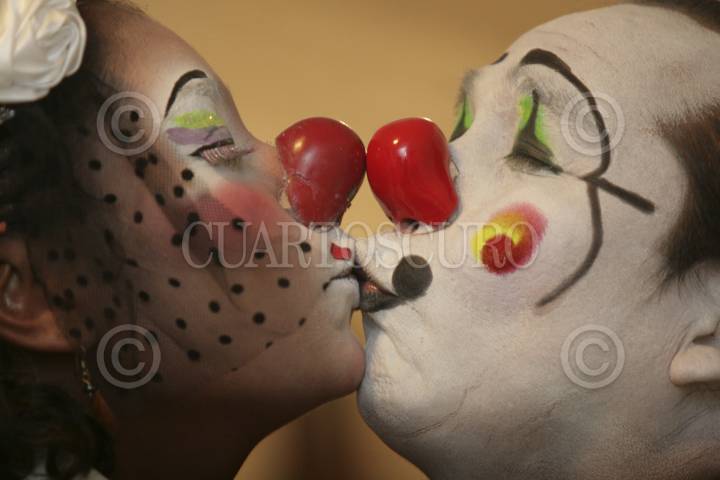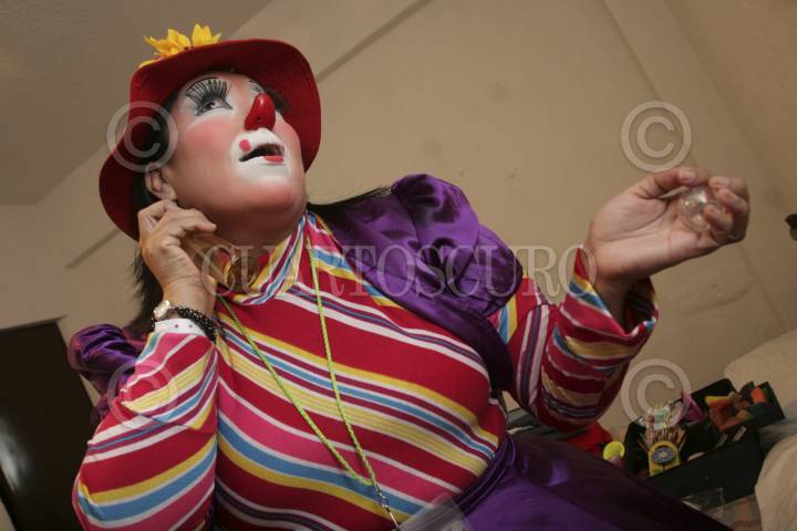 MÉXICO, D.F., 22OCTUBRE2012.- Payasos de la República del Salvador, Venezuela, Belize y otros países, así como de varios Estados de la República, agrupados en la "Hermandad de los Payasos", acudieron hoy a la inaguración de la Feria de la Risa, la cual tendrá actividades durante 3 días. Para ello se prepararon con horas de anterioridad en las habitaciones de sus hoteles maquillandose y afinando detalles de vestuario. En el acto inagural se pronunciaron en favor de la seguridad para sus compañeros, ya que han sido víctimas de la delincuencia. FOTO: JUAN PABLO ZAMORA /CUARTOSCURO.COM