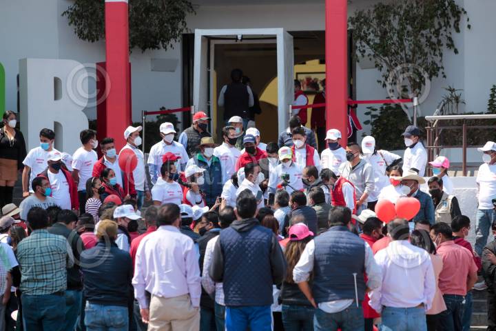 Militantes priísta olvidaron la sana distancia durante la inscripción de candidatos a presidentes municipales en el Comité Directivo Estatal del PRI.