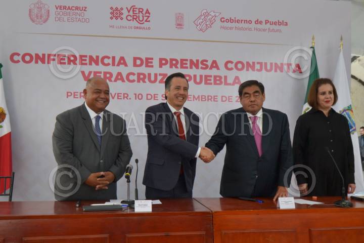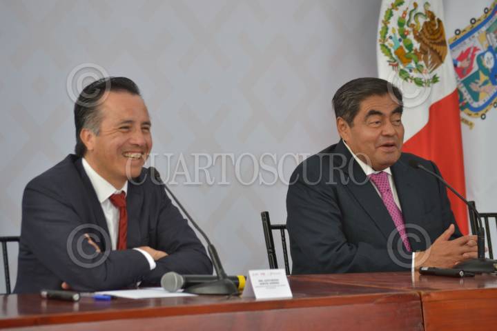 Conferencia entre Cuitláhuac García y Miguel Barbosa con motivo de la estrategia de seguridad que implmentarán entre ambos estados.