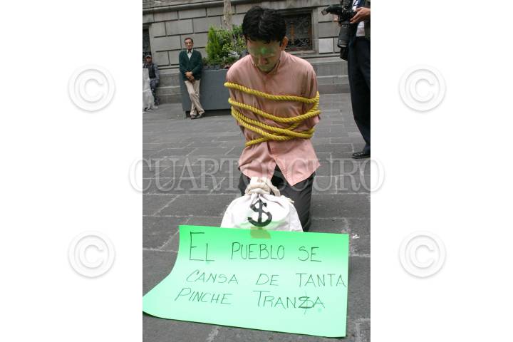 MEXDF 23JUNIO2004.- Un hombre se amarró y amordazó frente al senado de la república para protestar contra la delincuencia. FOTO: Iván Stephens/CUARTOSCURO.COM