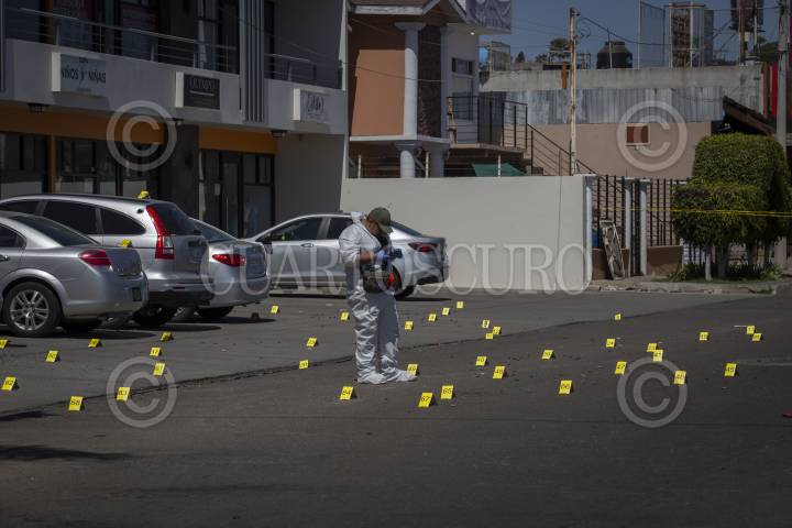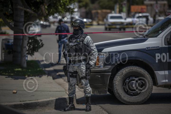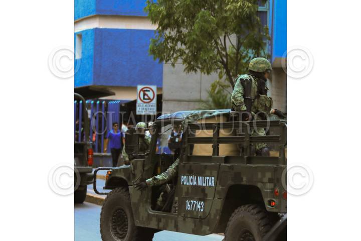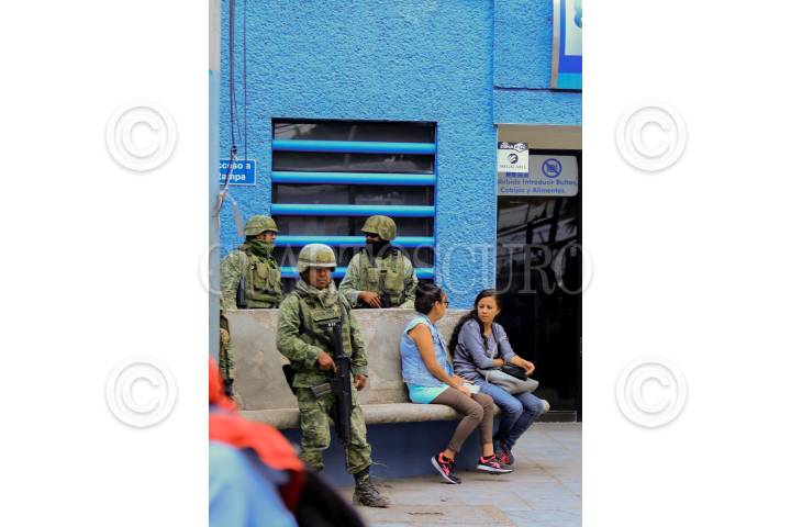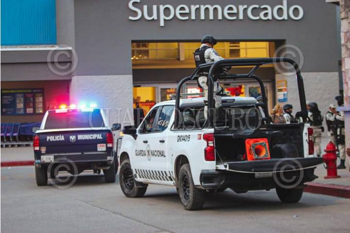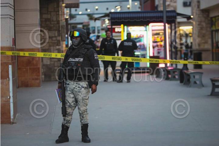 Elementos de la Guardia Nacional resguardando la Plaza 2000 después del tiroteo.