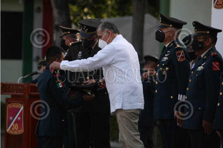 En el cuartel del 37/o Batallón de Infantería se llevo a cabo la Ceremonia de Imposición de Insignias a los oficiales que ascendieron al grado inmediato por haber obtenido calificaciones aprobatorias en el examen de la promoción especial 2020. En dicho evento se contó con la presencia del comandante de la 30/a Zona Militar José Fausto Torres Sánchez, quien tuvo de invitado al gobernador Adán Augusto López Hernández.