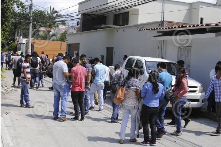 CHILPANCINGO, GUERRERO, 07JULIO2015.- Jóvenes presuntamente normalistas del estado, acudieron a las instalaciones de la Subsecretaría de Administración y Finanzas de la Secretaria de Educación Guerrero (SEG) mejor conocida como "La Casa Blanca", ubicada en la colonia Universal. FOTO: JOSÉ I. HERNÁNDEZ /CUARTOSCURO.COM