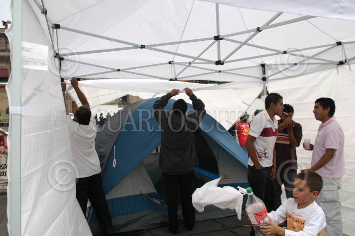 MÉXICO. D.F. 14SEPTIEMBRE2007.- Simpatizantes del Partido de la Revolución Democratica comenzaron a instalar sus campamentos como parte de sus actividades de resistencia civil pacifica para boicotiar el grito de independecia que pretende encabezar mañana el presidente de la repuplica. FOTO:SAÚL LÓPEZ/CUARTOSCURO.COM