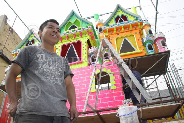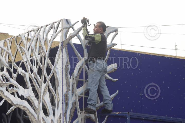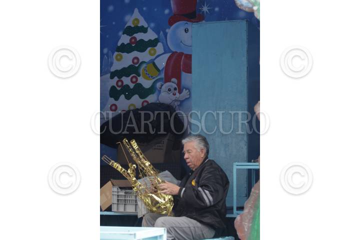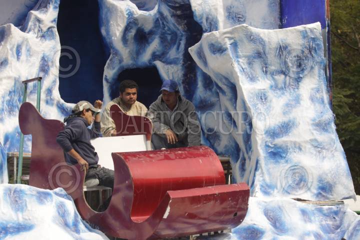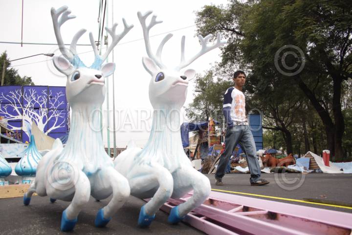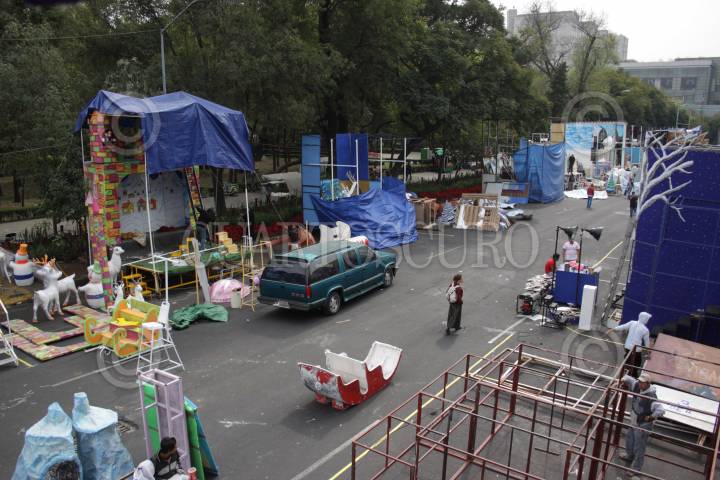 MÉXICO, D.F., 18DICIEMBRE2009.- Sobre la calle de Revillagigedo a un costado de la alameda central, se comenzaron a instalar los escenarios en los cuales se tomaran las ya tradicionales fotos con Santa Claus estas fechas navideñas. FOTO: SÁSHENKA GUTIÉRREZ/CUARTOSCURO.COM