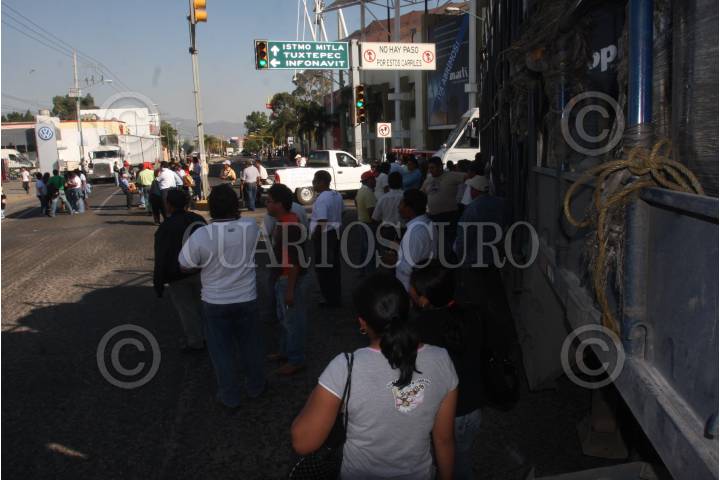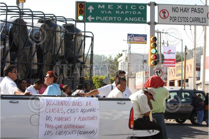 OAXACA, OAXACA 16DICIEMBRE2008.-Maestros disidentes de la sección 22 ahora sección 59, tomaron ayer por la tarde por espacio de 6 horas un bloqueo en el crucero de niños héroes, esto a manera de presión en exigencia del aguinaldo correspondiente y las prestaciones de ley, donde después de un acuerdo con autoridades y el secretario de gobierno del estado Manuel García Corpus se evito que se instalaran mañana en plantón. FOTO:MAX NUÑEZ/CUARTOSCURO.COM
