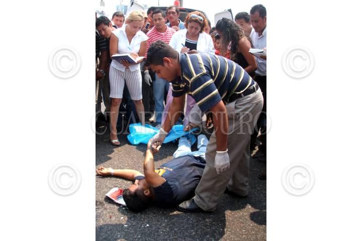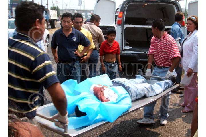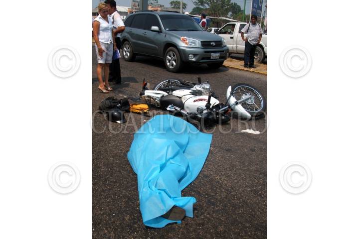 VILLAHERMOSA, TABASCO, 27ABRIL2007.- Sobre el periférico de esta ciudad capital, pierde la vida el repartidor de correspondencia bancaria, Jorge Alberto Oliva de la Cruz al manejar su motocicleta, cuando fue atropellado por un trailer que le causo la muerte de manera instantánea. FOTO: MARCO POLO GUZMÁN HERNÁNDEZ.