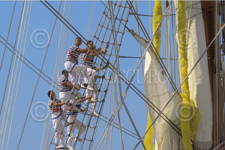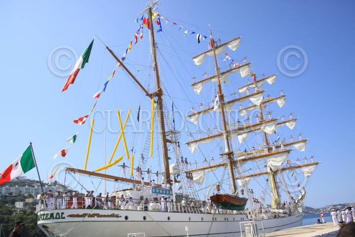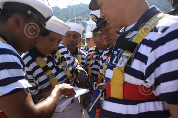 ACAPULCO , GUERRERO 11DICIEMBRE2009.- Tripulación de la escuela Velero de México que al medio día zarpó de su puerto base donde se hizo a la mar nuevamente iniciando el crucero de instrucción Bicentenario 2010, el cual tendrá una duración de 212 días, por los mares de Centro Y Sudamérica. FOTO:SÁSHENKA GUTIERREZ/CUARTOSCURO.COM