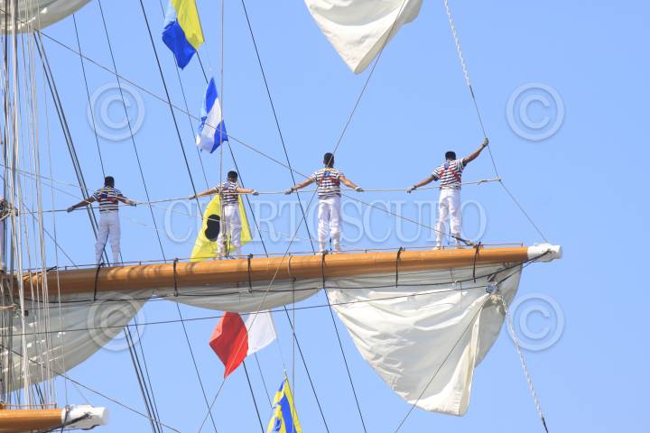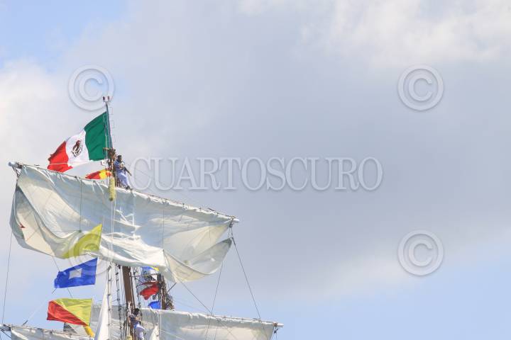 ACAPULCO , GUERRERO 11DICIEMBRE2009.- Tripulación de la escuela Velero de México que al mediodía zarpó de su puerto base donde se hizo a la mar nuevamente iniciando el crucero de instrucción Bicentenario 2010, el cual tendrá una duración de 212 días, por los mares de Centro Y Sudamérica. FOTO:SÁSHENKA GUTIERREZ/CUARTOSCURO.COM